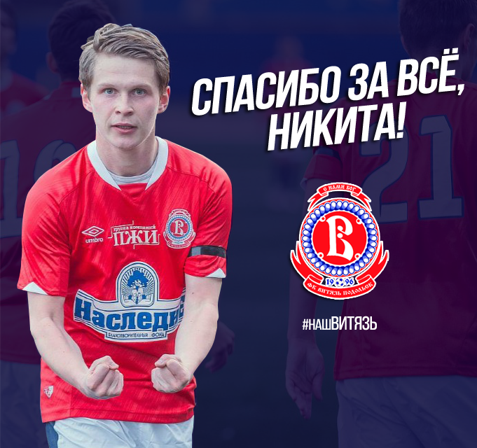 Футбольный клуб «Витязь» благодарит Никиту за все, что он сделал для нашей команды. Желаем как можно больше успехов и побед в дальнейшей карьере!