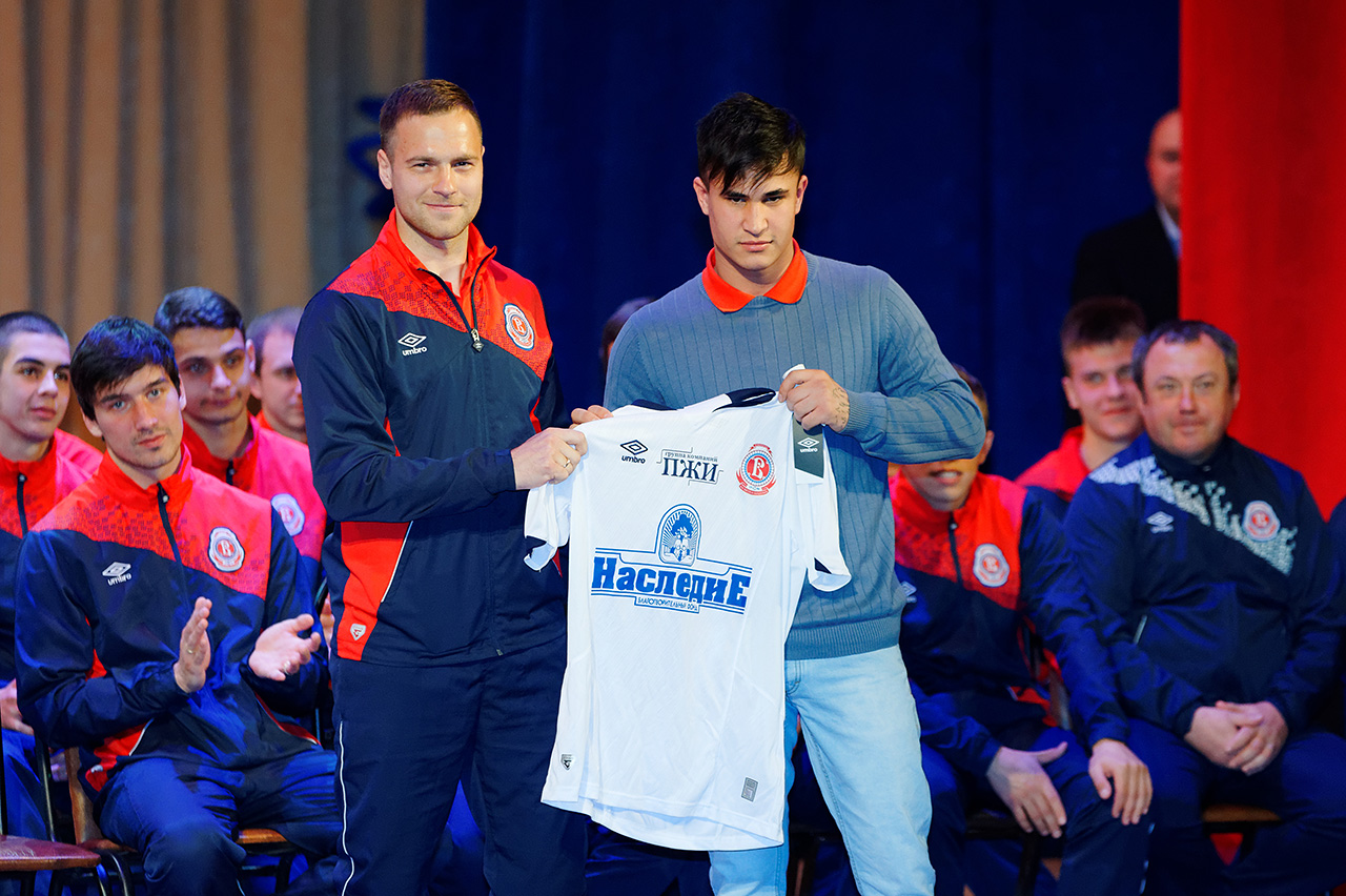 В начале церемонии со вступительным словом выступил генеральный директор клуба Юрий Михайлович Поляков. Он передал собравшимся приветственные слова от Президента Наблюдательного совета клуба Сергея Николаевича Лалакина и рассказал о работе, которая проводится для привлечения болельщиков на стадион и развития футбола в городском округе Подольск в целом.