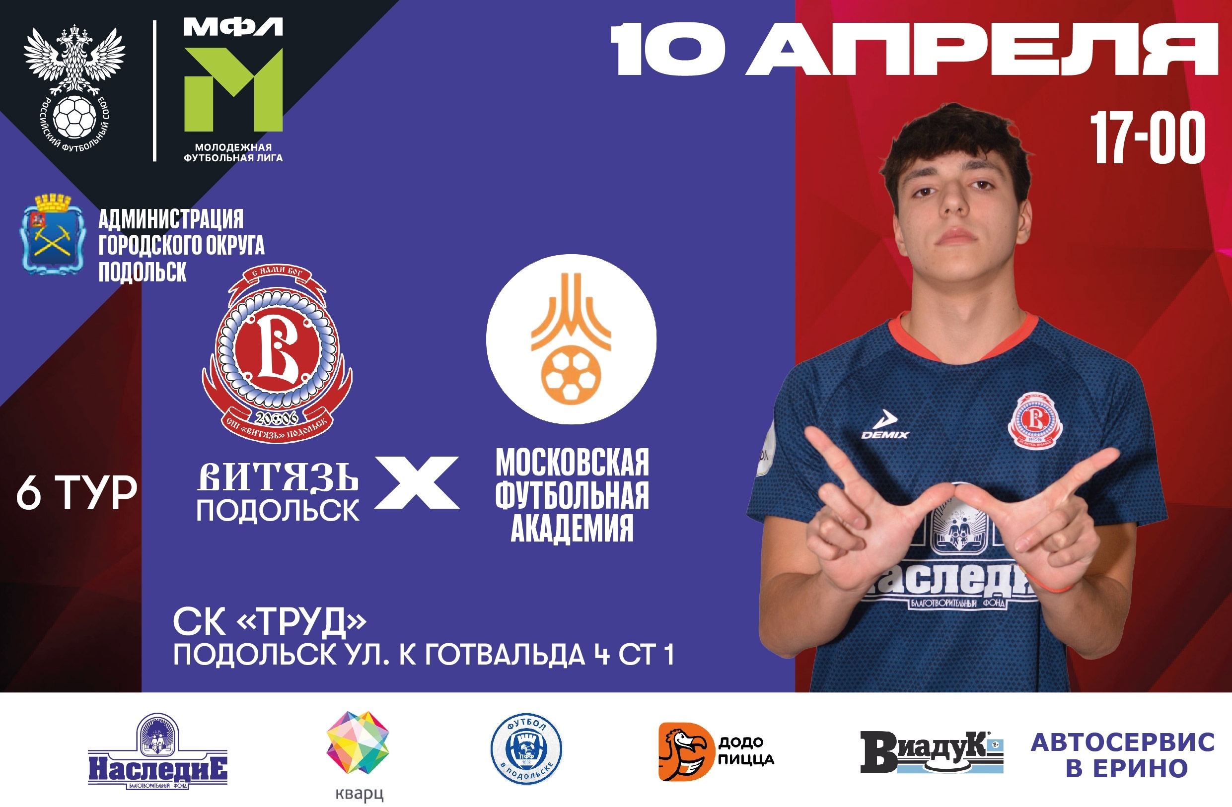 10 апреля 17:00. Молодежная лига. 6-й тур. Витязь (Подольск) - МФА (Москова). Дивизион Б